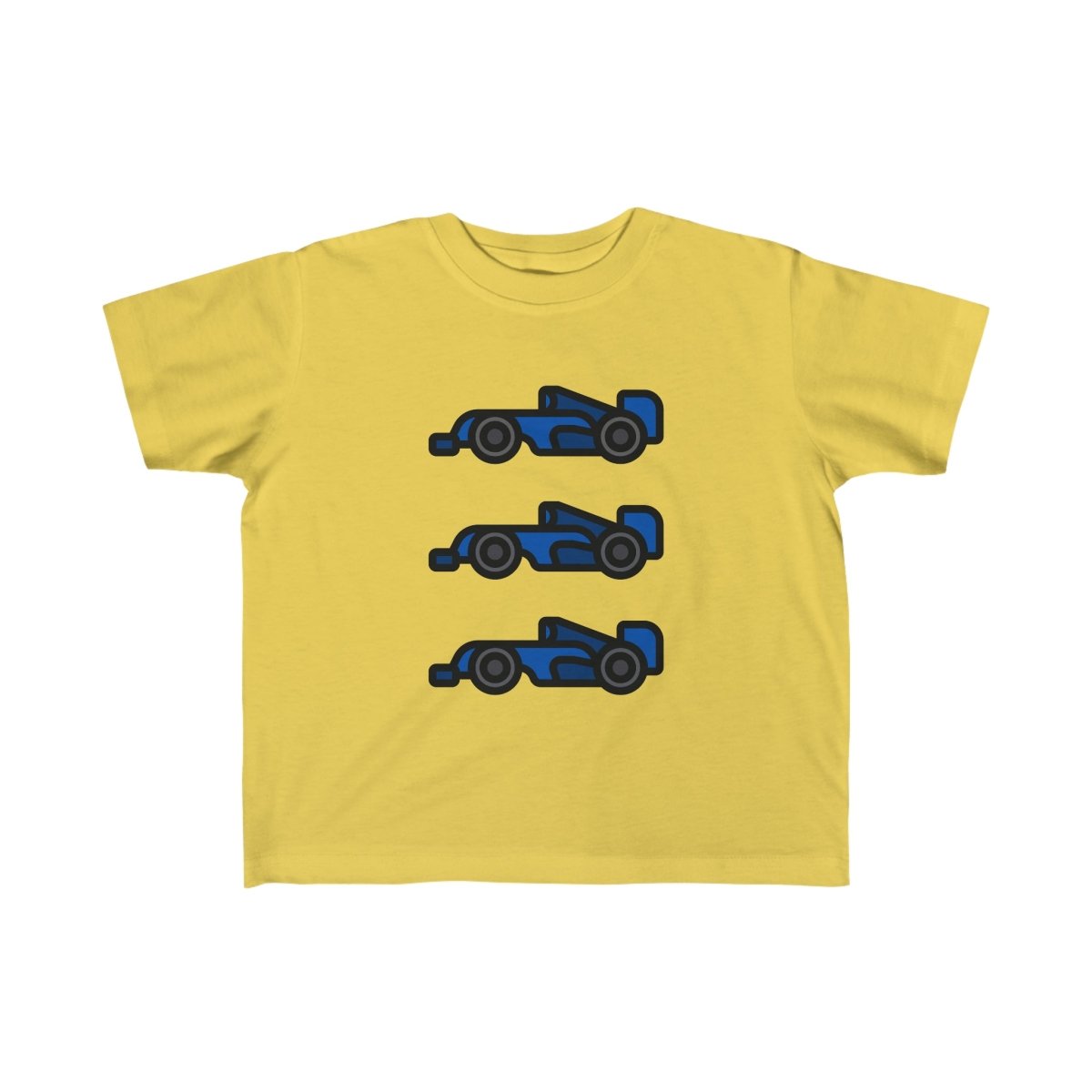 Rev up your little one's wardrobe with our Toddler T-Shirt featuring three racing cars sporting the blue livery! Available in nine lively colors and sizes ranging from 2T to 6T, this t-shirt is sure to be a hit with kids and parents alike.