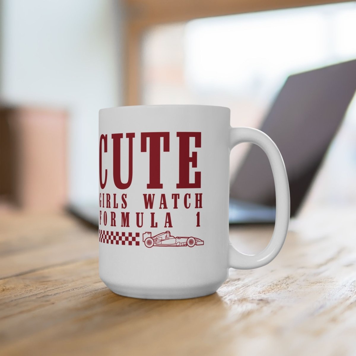 Whether you're trackside or couch-side, this mug is a fun, functional way to show the world that cute girls really do watch Formula 1.